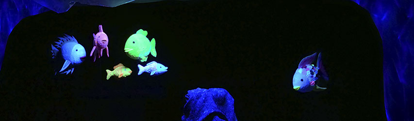 Licht und Schatten sind das Thema des Stationentheaters rund um die Gestirne. Aus sich herausleuchtende Kostüme werden zur Schattenbühne oder zum Sternenhimmel, bespielt mit Figuren oder Ganzkörpermasken auf einem Lichterweg, auf dem die Teilnehmenden mit ihren Laternen selbst Teil des Geschehens werden.