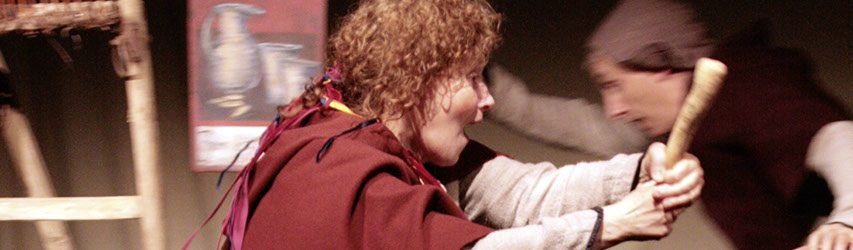 Albertina und Hilarius, die beiden Gaukler, haben diesmal nicht ihre Theaterbude dabei, sondern den kleinen Theaterkarren. Und eine Kiste voll mit Figuren aus dem Märchen von „Tischlein deck dich“ – die launische Ziege, die einmal satt ist und dann wieder nicht, den Schneider und seine drei Söhne, deren Meister und natürlich den diebischen Wirt, der am Ende den Knüppel-aus-dem-Sack zu spüren bekommt!